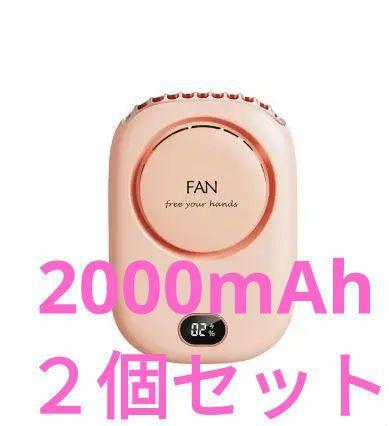 > 2個セット ピンク 2000mAh 携帯 扇風機 卓上 手持ち ハンディファン 首掛けファン ベルトファン 腰掛けファン ウエストファン