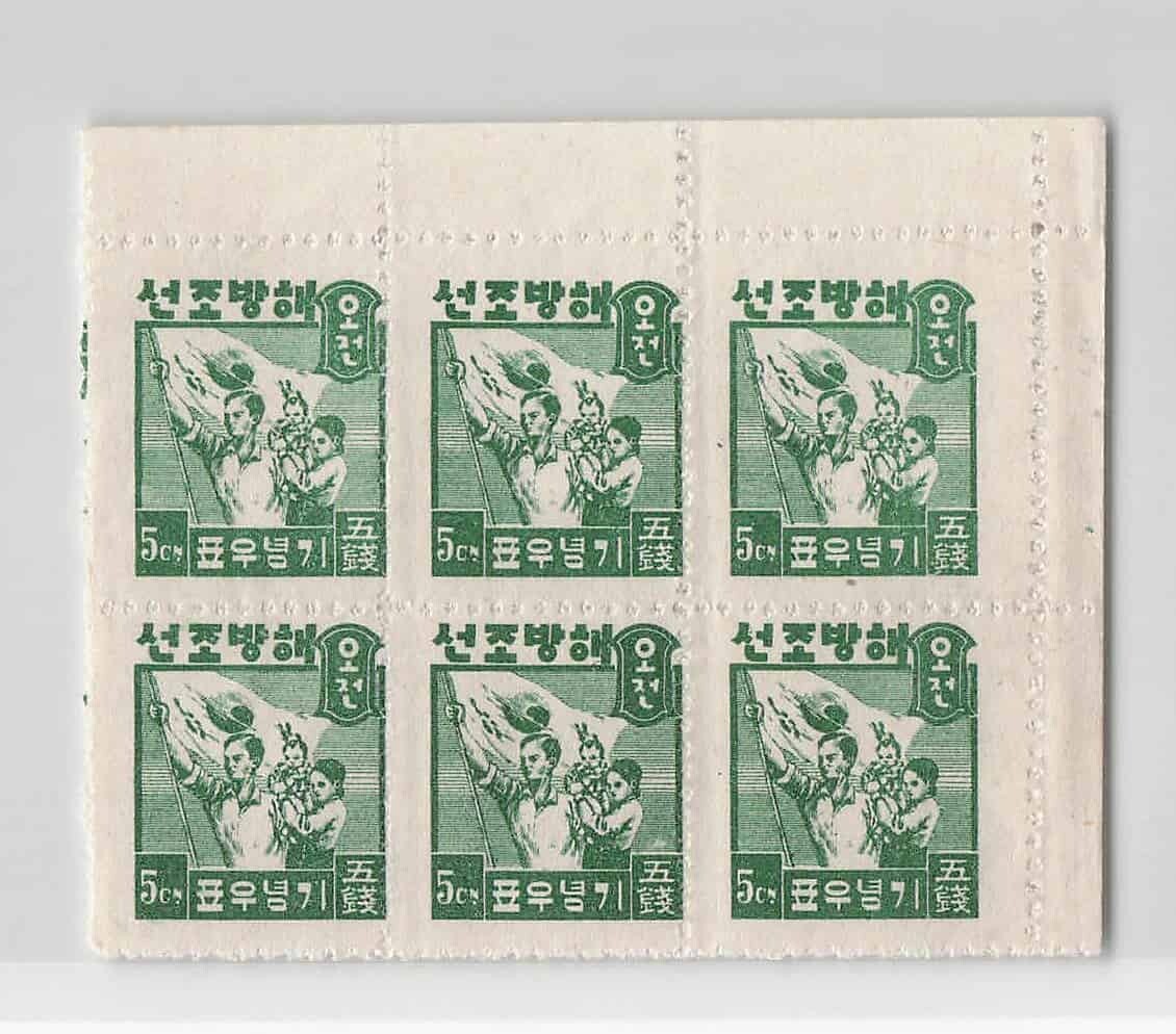 - *[令]韓国独立後最初の切 5チョン 1946年 6枚ブロック 北朝鮮[A4477]7n3