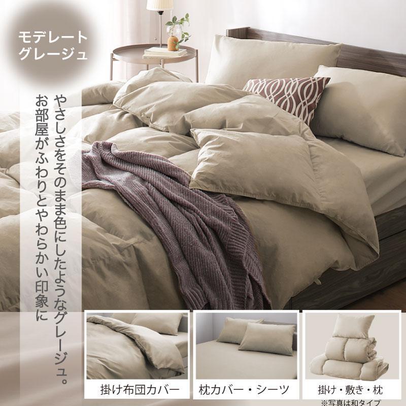 - 数量限定 未使用訳あり スモールフェザー100% 羽根布団 ダブル 11点セット ピーチスキン仕様 ベッドタイプ モデレートグレージュ