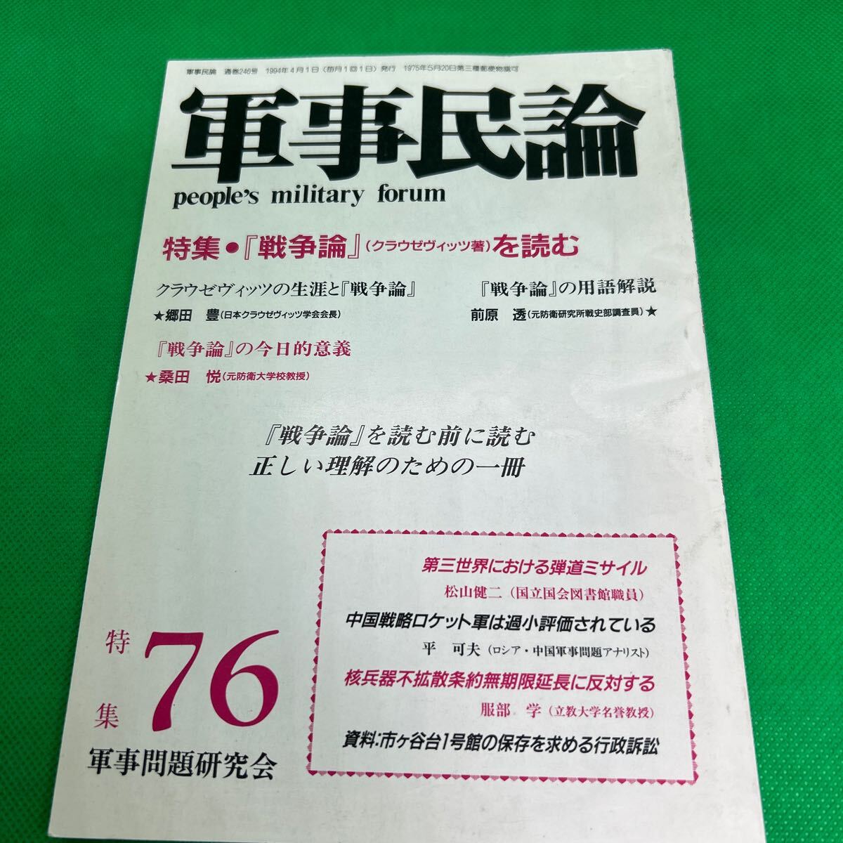 - 軍事民論76/1994年4月発行/軍事問題研究会/『戦争論』(クラウゼヴィッツ)を読む/第三世界における弾道ミサイル/I250703-28*78