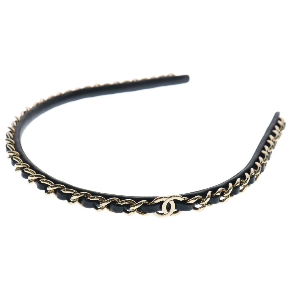 - CHANEL シャネル ココマーク チェーンモチーフ カチューシャ ヘアバンド ブラック ゴールド金具