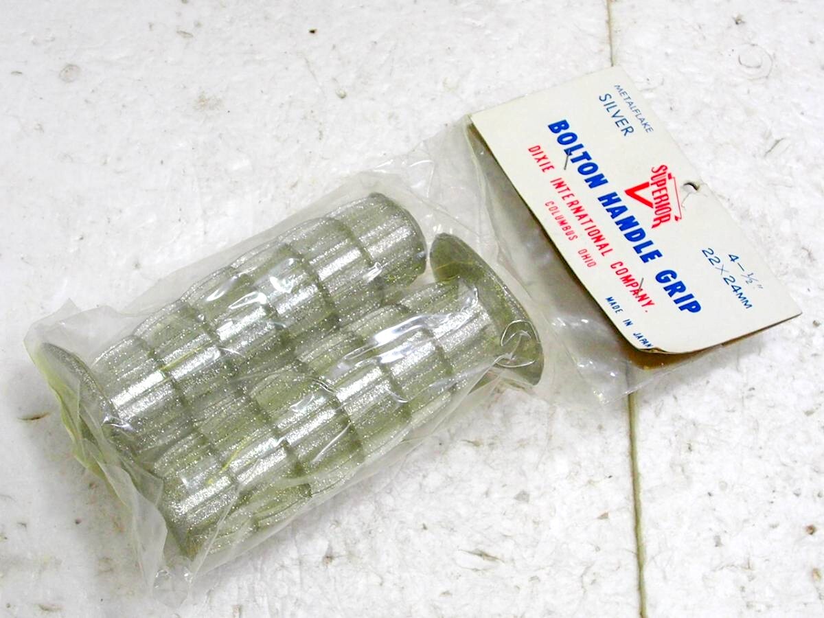 - 06 BOLTONグリップ 銀ラメ たる型 ヒダヒダ 激レア 当時物 OGK スーペリア チョッパー ボバー カスタム カフェレーサー ロッカーズ