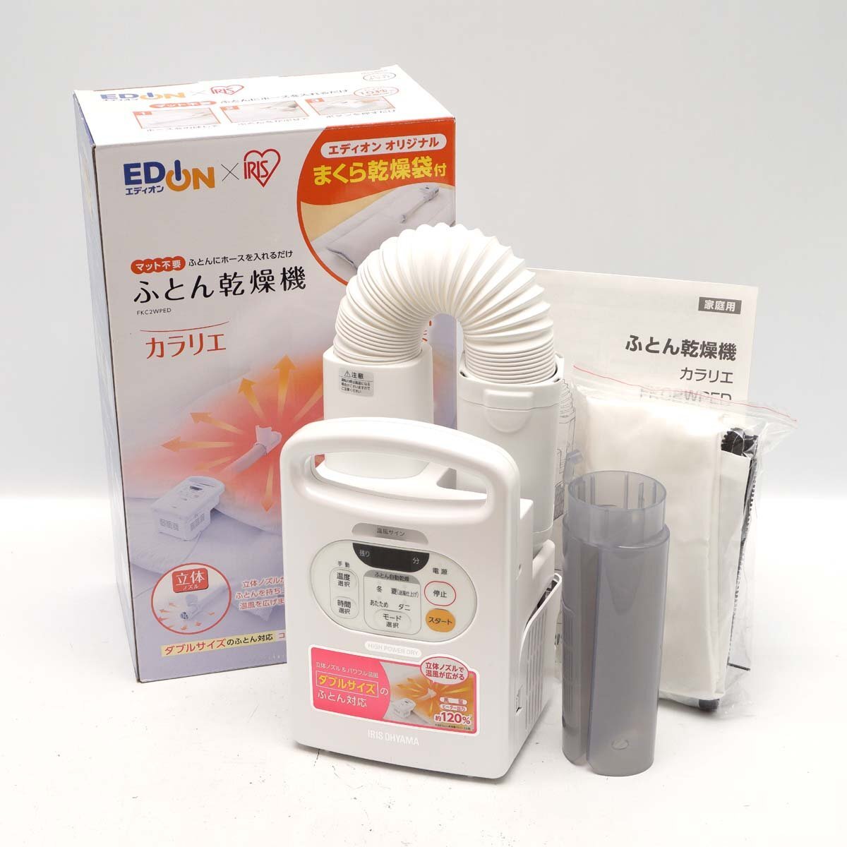 - 【美品】アイリスオーヤマ ふとん乾燥機 カラリエ FKC2WPED パールホワイト まくら乾燥袋付属 [H801647]