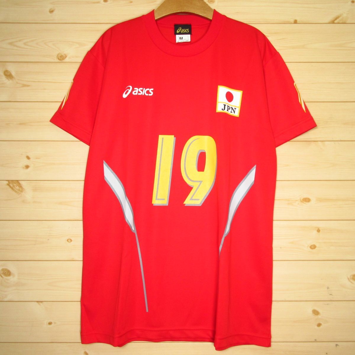 > ◎極美品!バレーボール 日本代表 aiscs アシックス #19 ユニフォーム ゲームTシャツ 龍神NIPPON メンズ 赤 Mサイズ◆AU0519