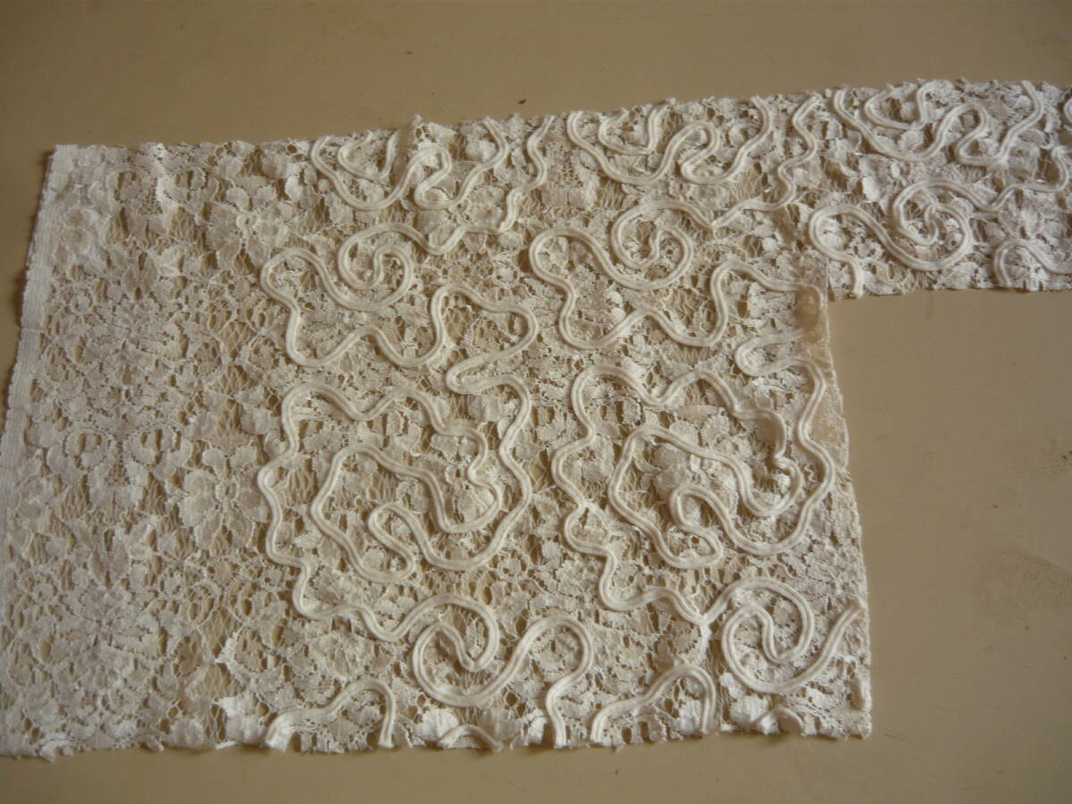 - ハギレ*レース*花柄麻混:オフホワイト*1枚②新