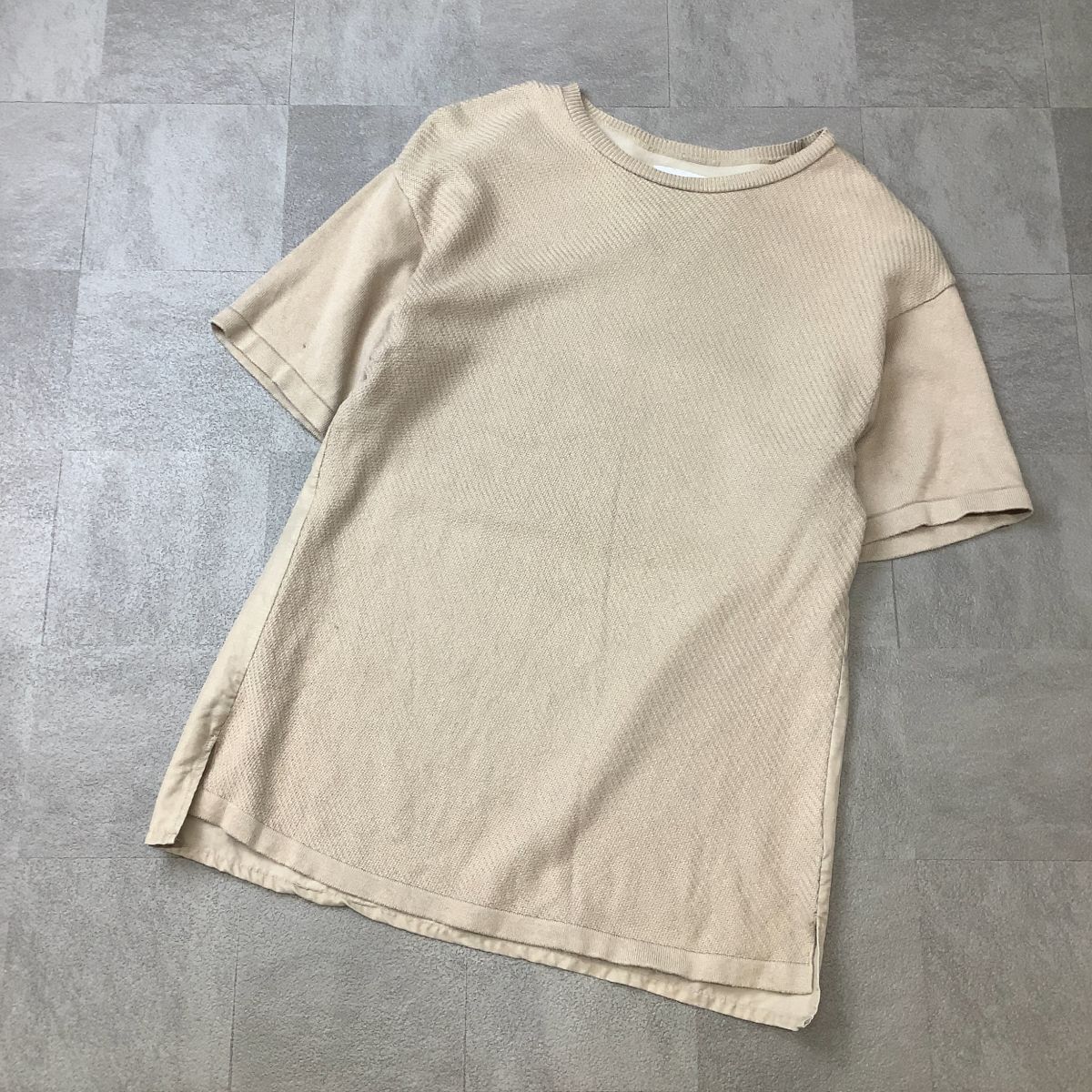 - STUDIOUS スタディオス 半袖 ニット カットソー メンズ サイズ 1 ベージュ シルク混 サマーニット