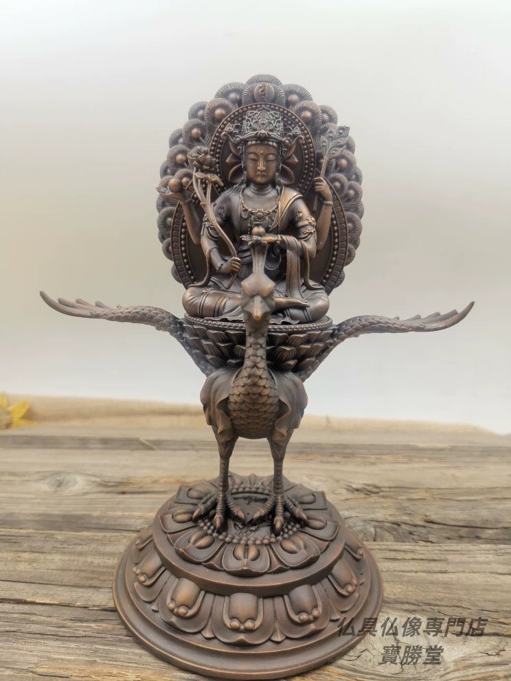 - 仏像 孔雀明王 座像 乗座孔雀 高さ18CM 青銅製 【送料無料】【仏具仏像専門店寶勝堂】