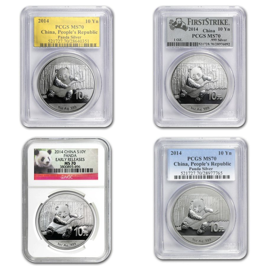 - [保証書・スラブ付き] 2014年 (新品) 中国「パンダ」純銀 1オンス 銀貨 MS70 (ランダムラベル)