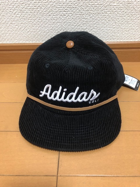 - 新品タグ付きのadidas【アディダス】ゴルフキャップ コーデュロイ 黒色★4400円→1780円即決★フリーサイズ、帽子