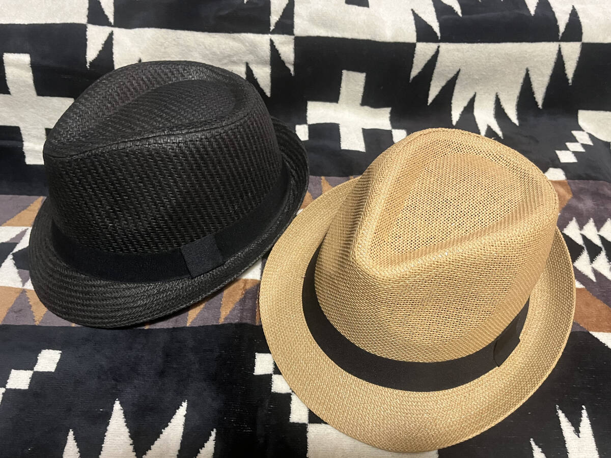 - 2点セット 帽子 中折れハット メンズ レディース 男女兼用 キャップ キャップ ソフト帽 麦わら帽 ハット ベージュ ブラック 005