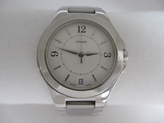 - ★COACH コーチ クォーツ メンズ 腕時計 0154 白文字盤 稼働品 状態良好