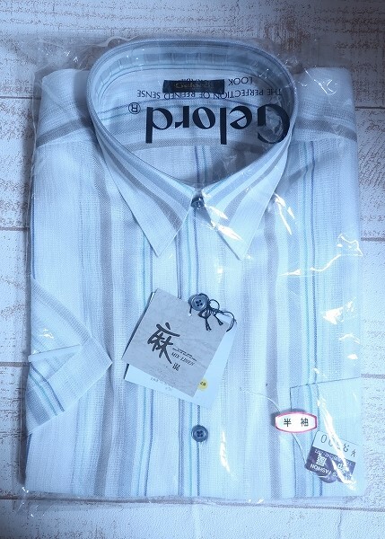 - 2-1798B/未使用品 Gelord 半袖リネンストライプシャツ