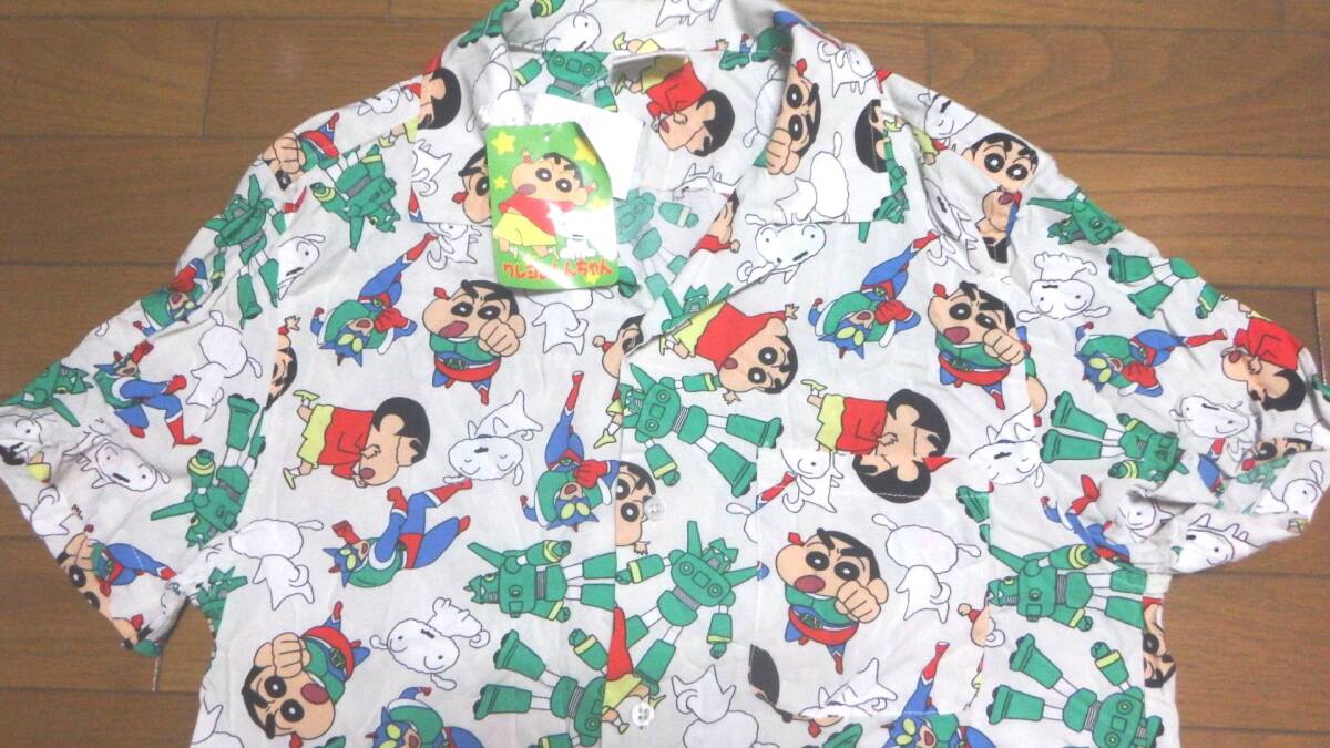 > 新品 1点限り 即決あり! 早い者勝ち クレヨンしんちゃん アロハシャツ 半袖 シャツ 総柄 Mサイズ 正規品 レーヨン100%