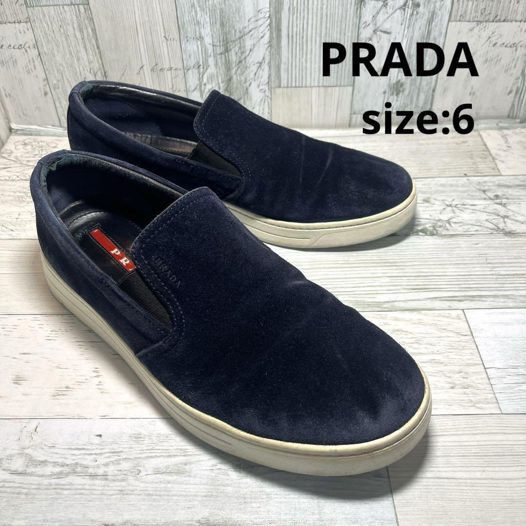 - プラダ PRADA スリッポン スエード ネイビー 6 メンズ シューズ 靴