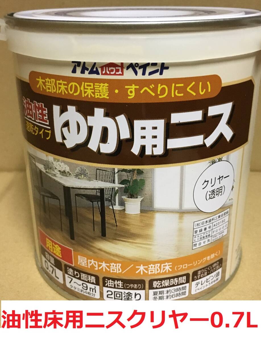- 油性ゆか用ニス 0.7L クリヤー アトムハウスペイント 木の床、廊下、階段、建具、木工品等に