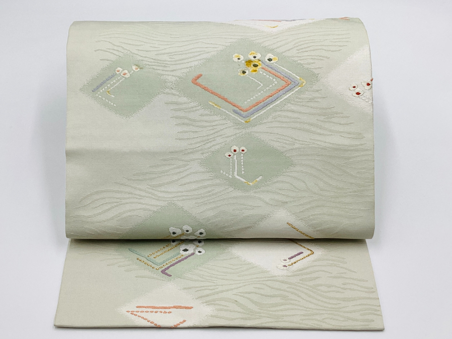 - 中古品 正絹 名古屋帯 唐織 六通柄 O25001 t
