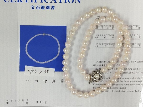 - 0703L38 本真珠 あこや ネックレス 宝石鑑別書付 約30g