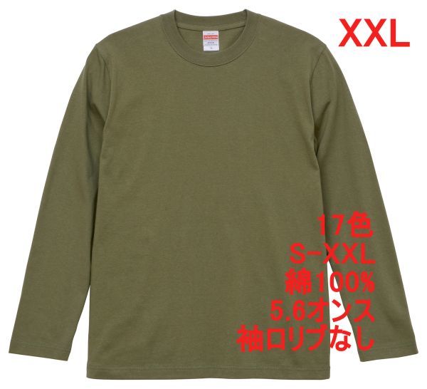 - 長袖 Tシャツ XXL ライト オリーブ ロンT 袖リブなし 綿100 5.6オンス 無地 無地T 長袖T コットン A514 3L 2XL グリーン 緑 緑色 501001