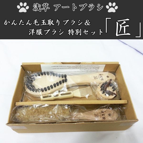 - 01004 【中古品】浅草 アートブラシ かんたん毛玉取りブラシ&洋服ブラシ 特別セット「匠」 日本製 数回のみ使用? 目立った傷汚れ無し