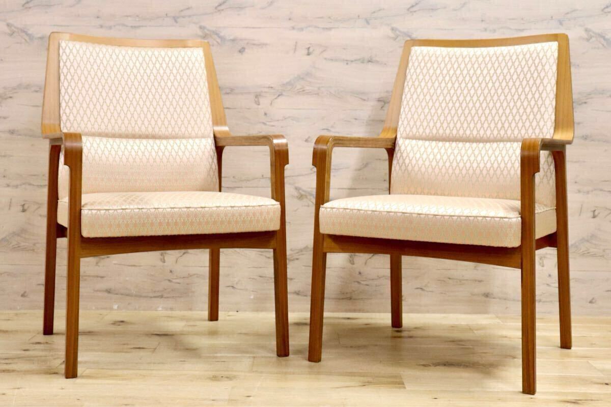 > GMIK327C○天童木工 / Tendo アームチェア ダイニングチェア 2脚セット 椅子 チーク 曲木 ファブリック 国産家具 モダン