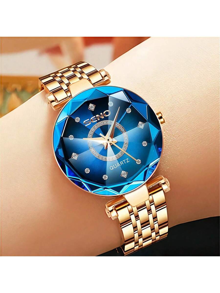 - 腕時計 レディース クォーツ 1個 サファイア レディース腕時計 ステンレススチール ローズゴールドストラップ 3Dカットガラスダ