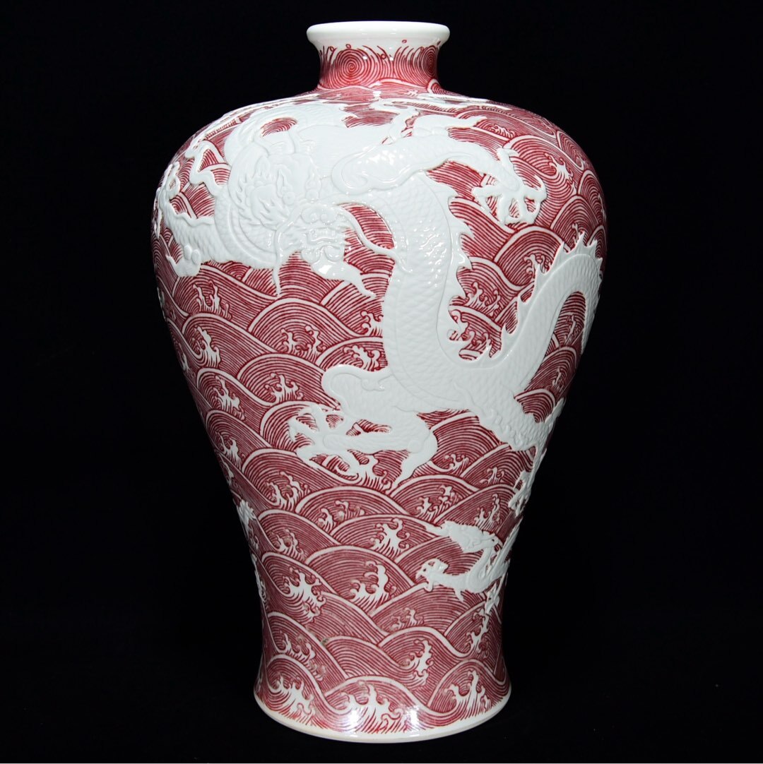 - ■LH171■大清雍正年制款 釉里紅浮彫龍紋 時代物 古玩 唐物 古陶磁器■