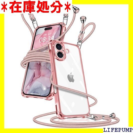 > iPhone 16 用 ケース クリア ショルダー i 落下防止 紛失防止 ワイヤレス充電対応 ローズゴールド 1889