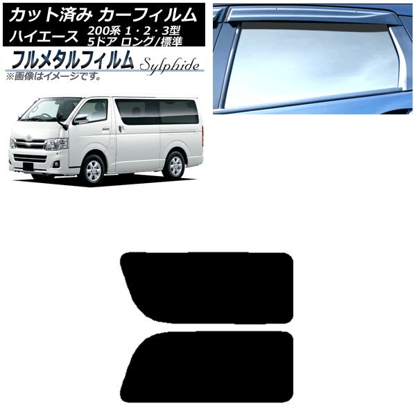 > カーフィルム トヨタ ハイエース 200系 1/2/3型 バン 5ドア ロング/標準 2004年08月~2013年12月 リア 2列目 左右固定窓 プライバシーガ…