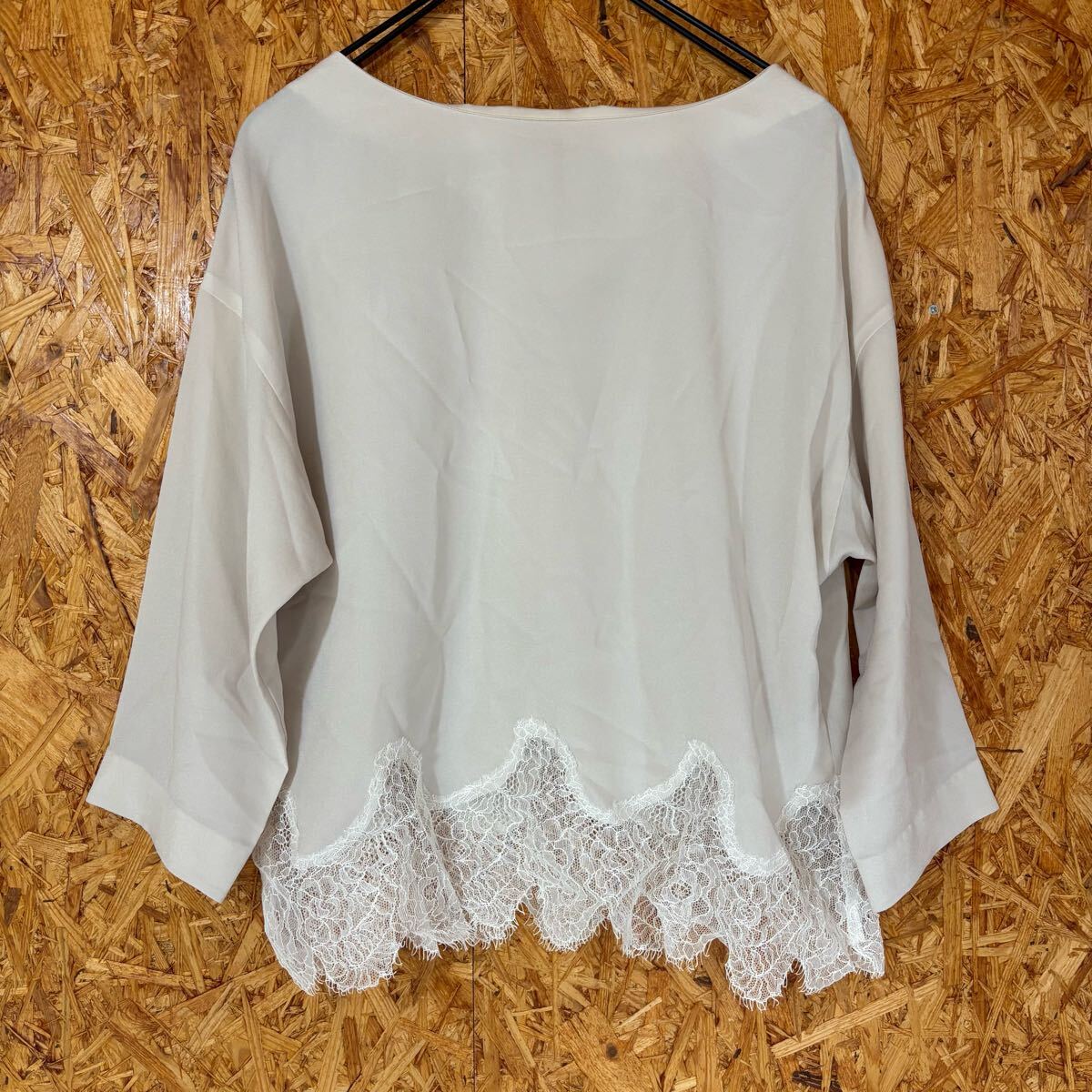 > 美品 Unaca 綺麗め カットソー 七分袖カットソー Vネック 薄手 透け感 裾レース レディース トップス 4732