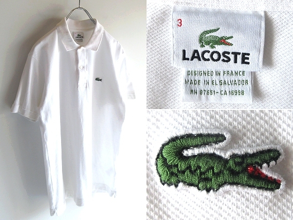 > 希少 90sビンテージ LACOSTE ラコステ DEVANLAY社 ワニロゴワッペン 鹿の子 ポロシャツ 3 ホワイト 白 フランスデザイン ネコポス対応