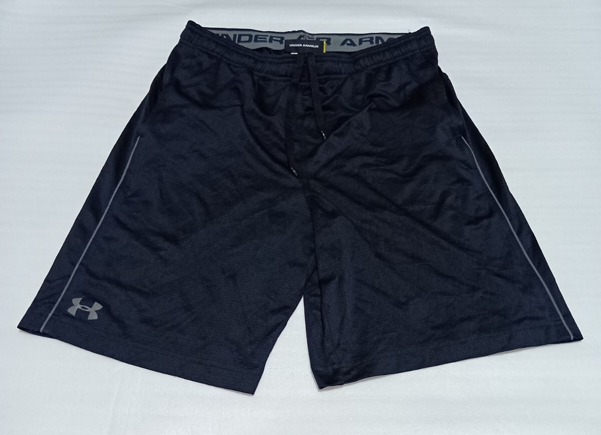 > ☆UNDER ARMOUR サイズLショート短パンツ半ハーフ ズボンLOOSEボトムスHEATGEAR黒ブラックGLAY細LINEスポーツ ストレッチ アンダーアーマー