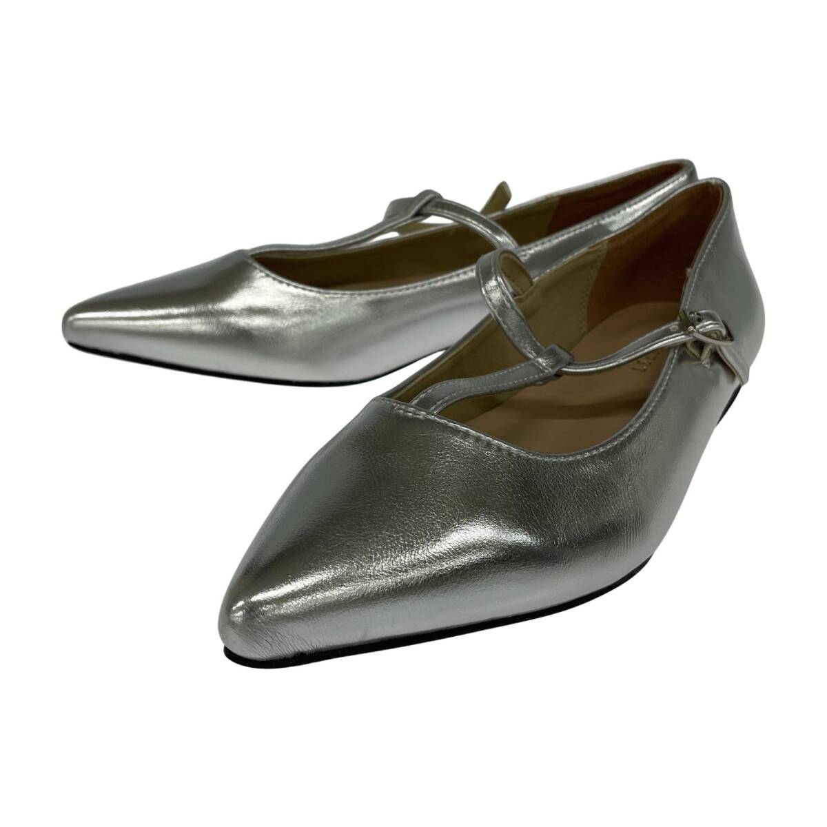 - LELIEN PLUS レリアン プラス ポインテッドトゥ ストラップ パンプス sizeS/シルバー