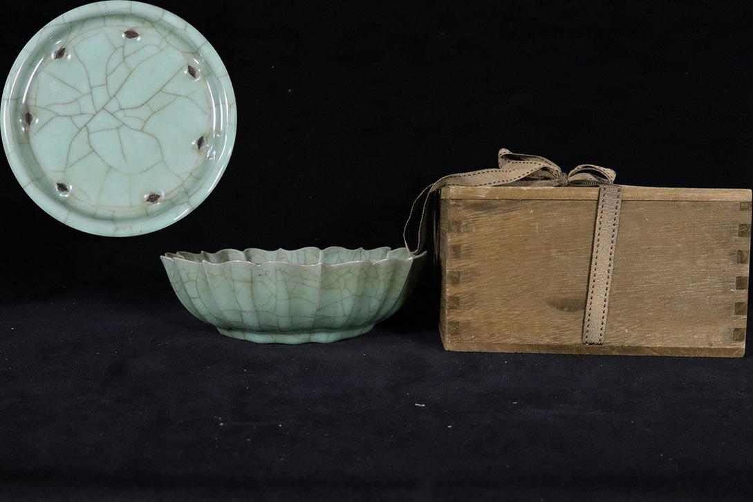 - ■観心・時代旧蔵■C4174南宋 官窯粉青釉葵口洗・古陶磁器 ・珍品旧蔵・古賞物・時代物