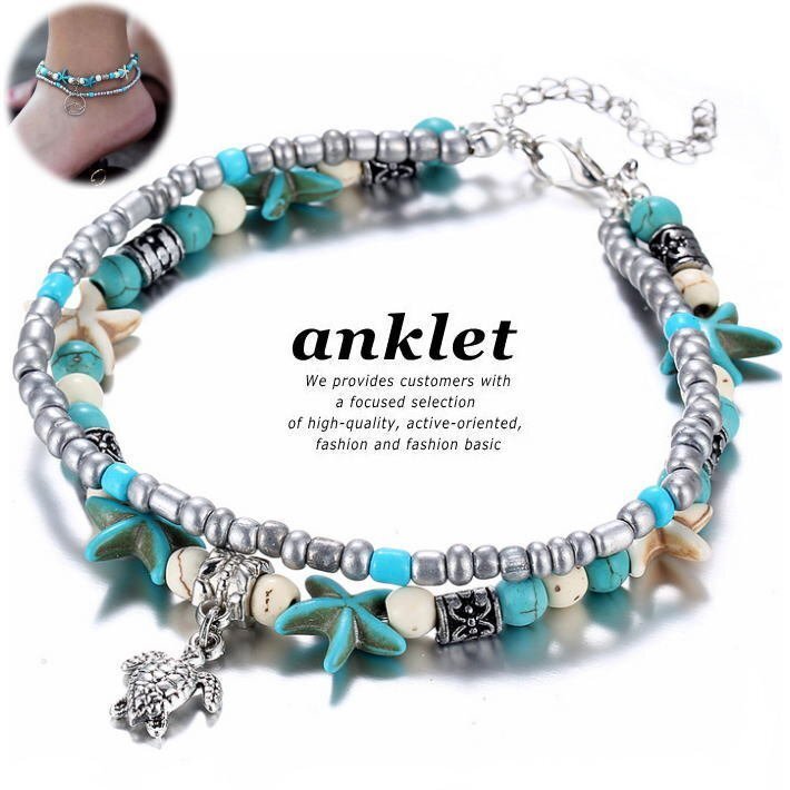 - アンクレット メンズ レディース 手作り つけっぱなし お守り アンク アクセサリー シルバー ターコイズ 7992099 カメ/ヒトデ 新品
