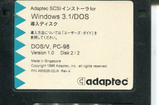 - 【Adaptec】SCSIインストーラ(Windows3.1/DOS導入ディスク) 3.5”FDx1枚