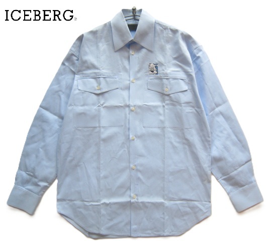 - 極上イタリア製!!アイスバーグ ICEBERG*90sヴィンテージ HISTORY ダブルポケット ロゴ・キャラクター刺繍 ワークシャツ S ARCHIVE Y2K