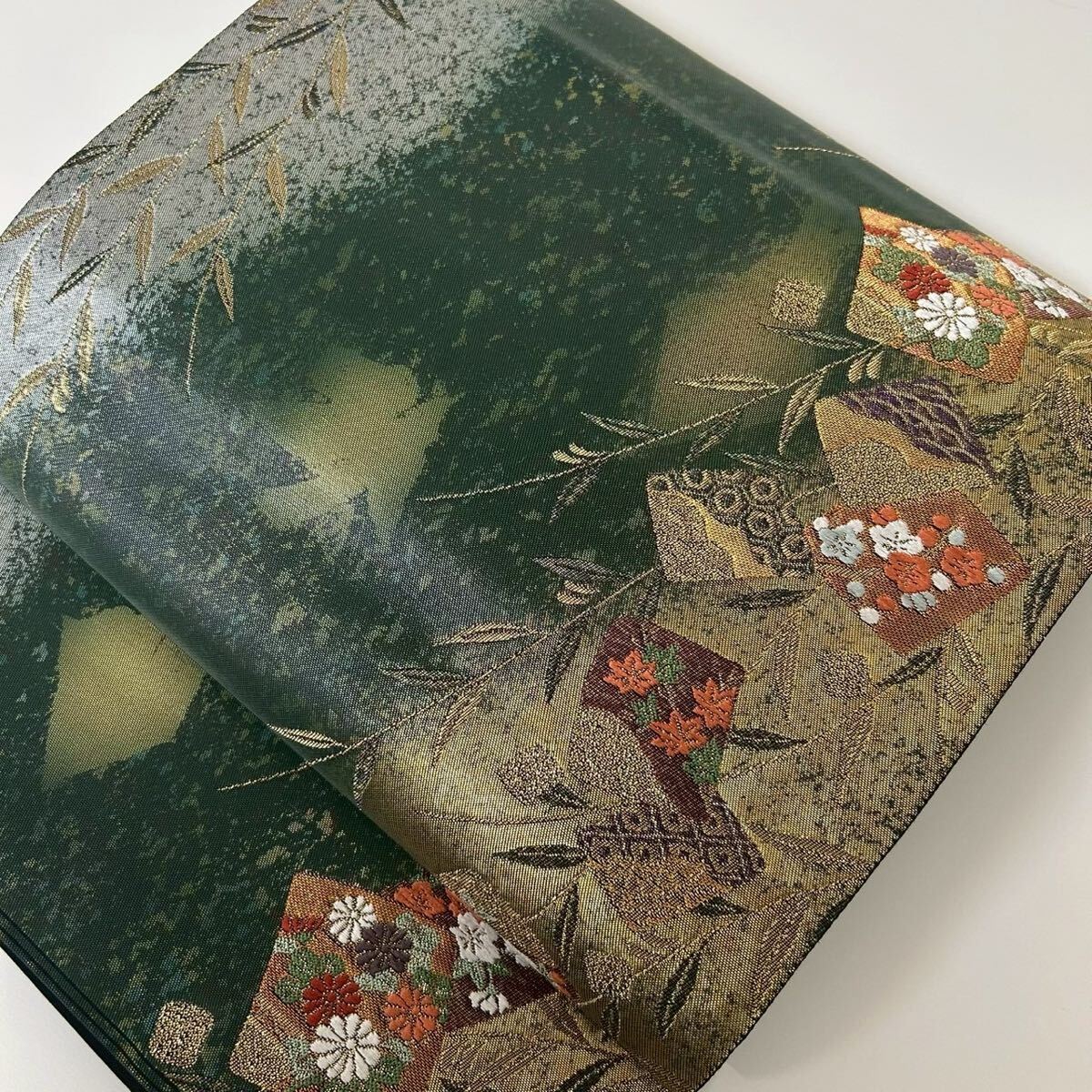 - 袋帯 正絹 引き箔 唐織 上品な花 六通 W-2856