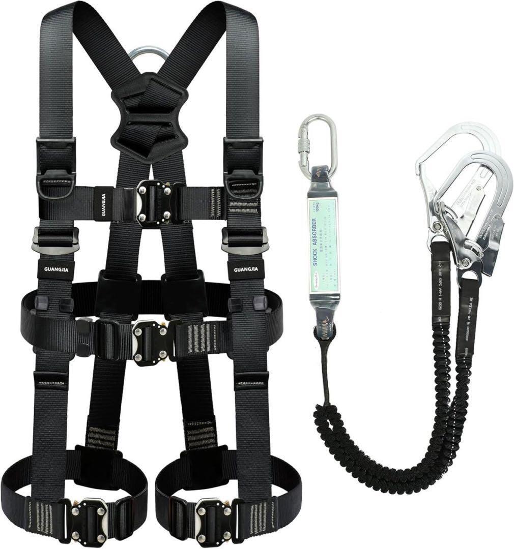 - フルハーネス安全帯 新規格 セット - 安全保護 ワンタッチ バックル 脱着簡単 ハーネス安全帯 ランヤード付き 2丁掛 落下防止