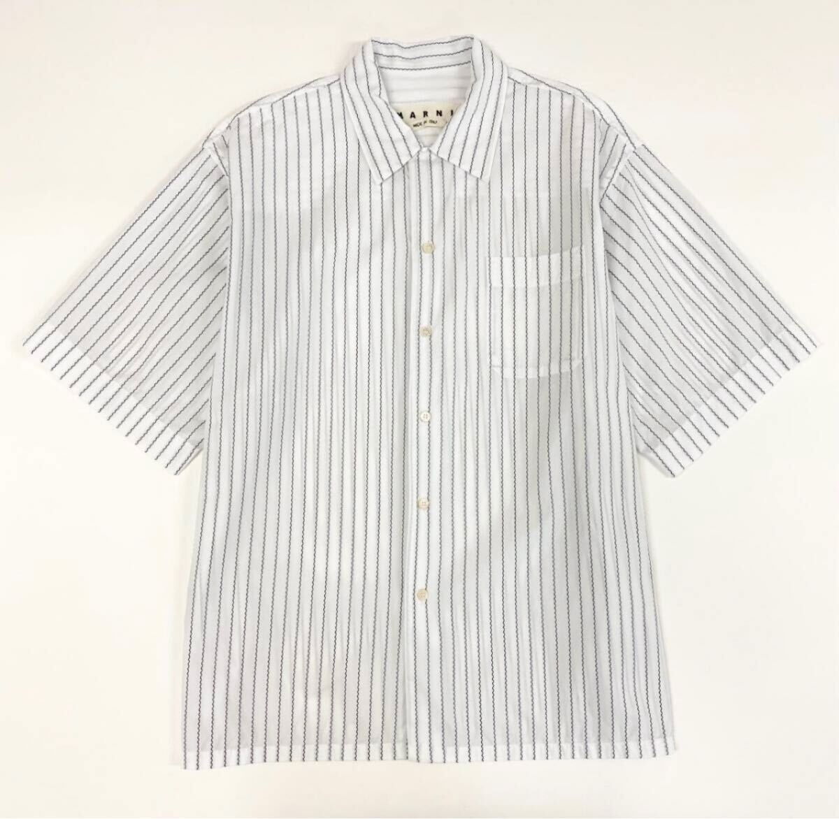 > 84e30 MARNI マルニ ショートスリーブ ストライプ オープンカラーシャツ 半袖 開襟 シャツ イタリア製 CUMU0054A0 44 ホワイト コットン
