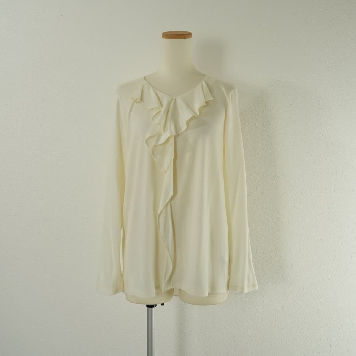 商品名:EVEX by KRIZIA エヴェックス バイ クリツィア フリル 長袖 トップス ブラウス カットソー ウール混 オフホワイト