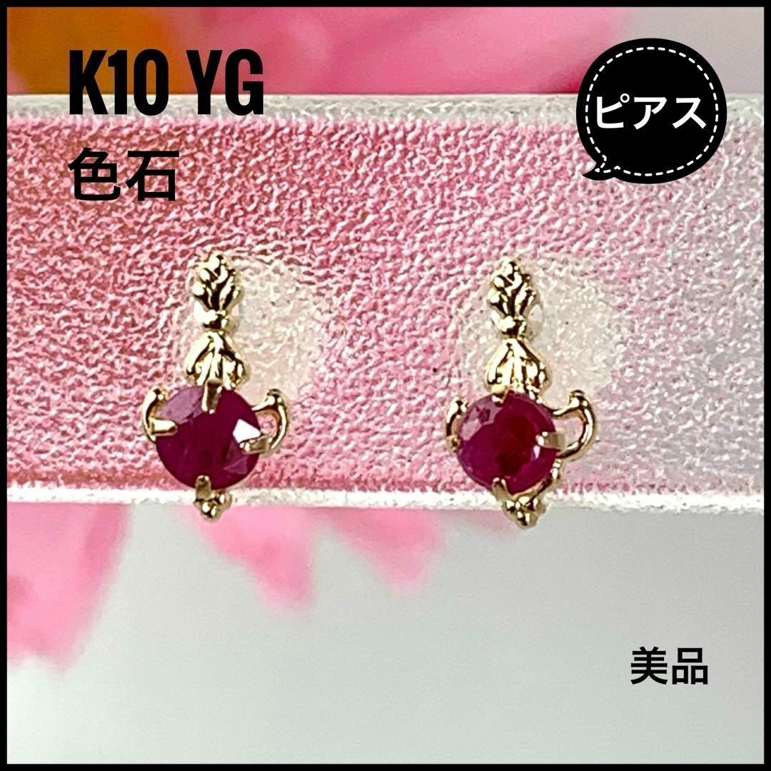 - K10 YG 色石(濃いピンク)ピアス 総重量 0.21g 美品 レディース