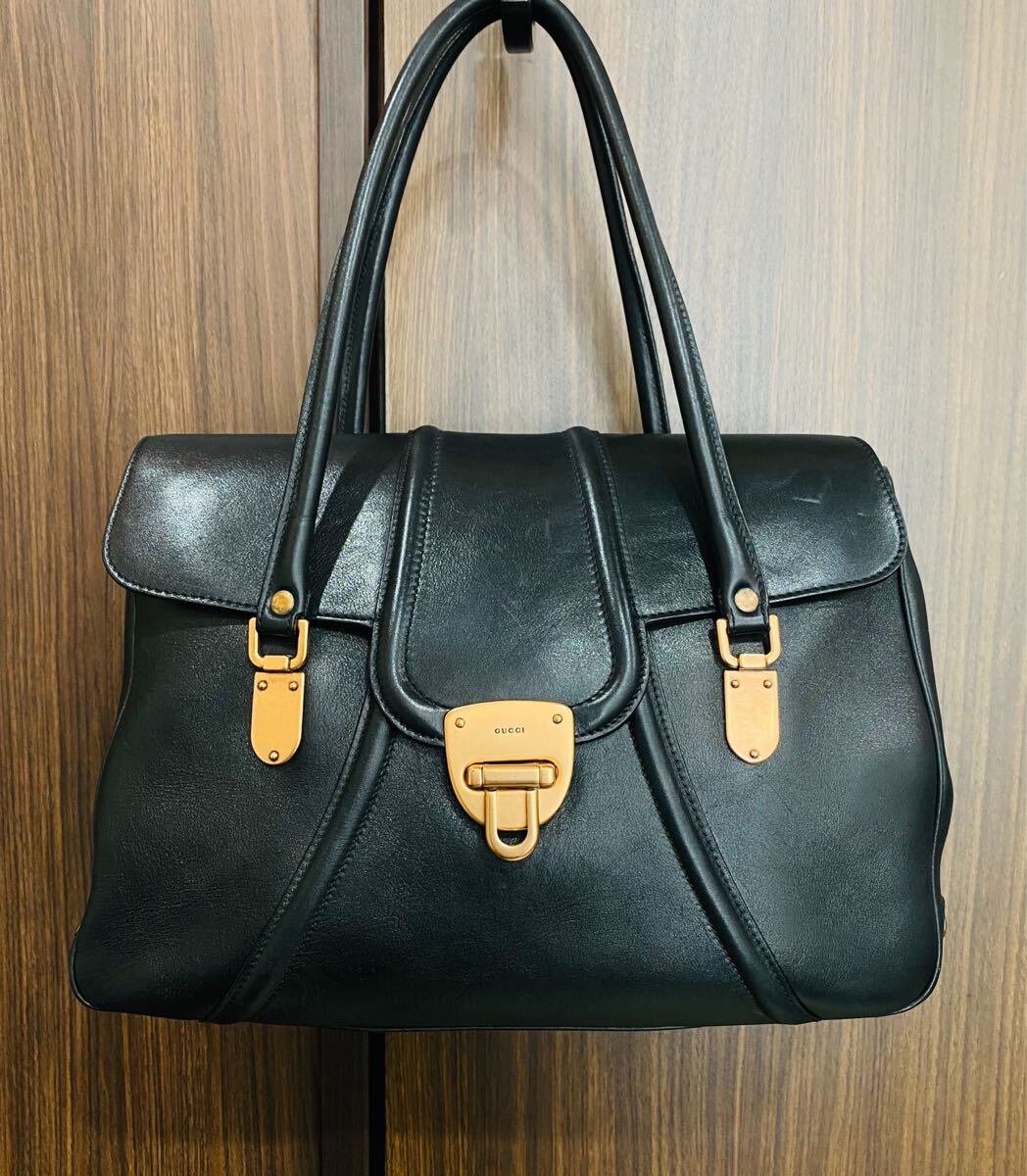 - 美品 GUCCI グッチ 124230 3444 レザー ショルダー ハンドバッグ ブラック イタリア製