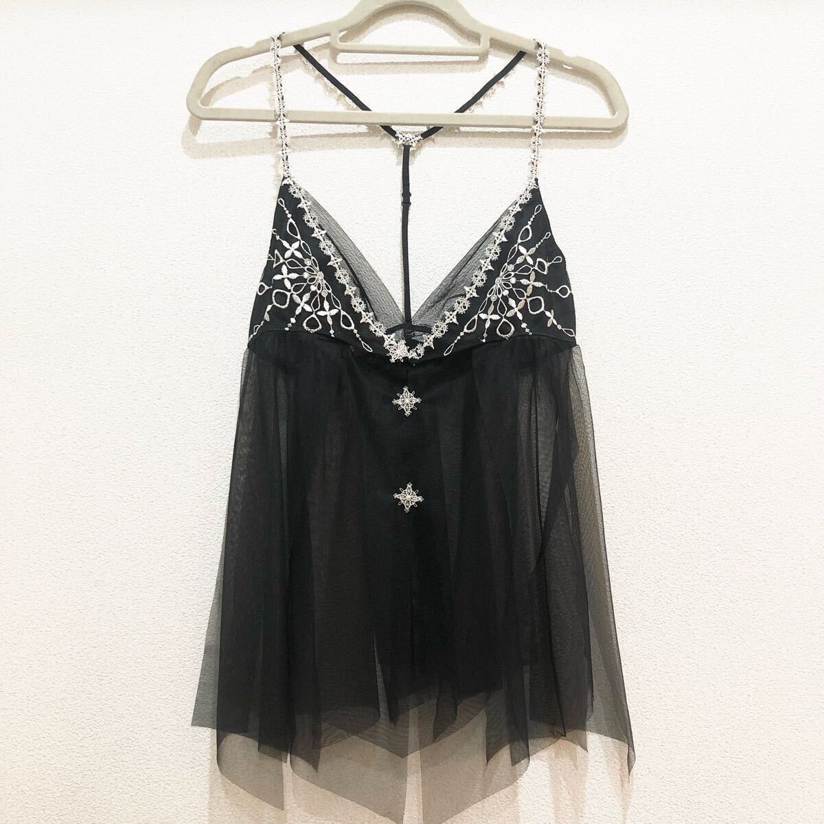 > ●未使用● desir triumph デジール トリンプ キャミソール 80 透け感 シフォン シースルー 黒 ブラック エロカワ 刺繍