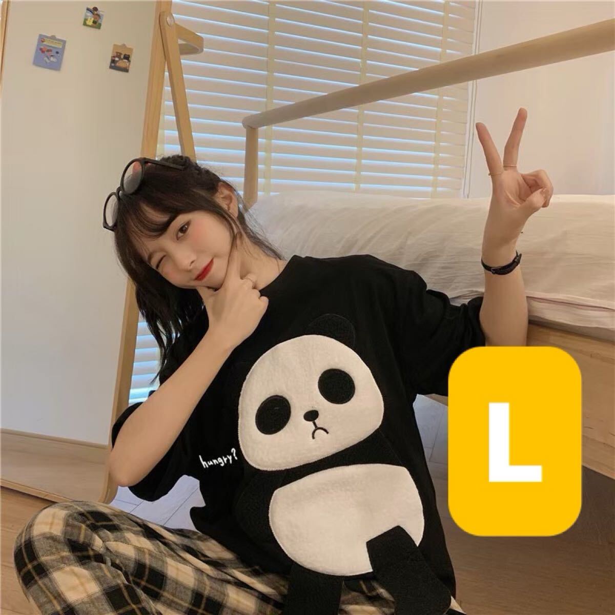 - ビッグシルエット 半袖 トップス Tシャツ カットソー パンダ シャツ オーバーサイズ レディース デザイン ぱんだ パンダ #ブラック#黒 #L