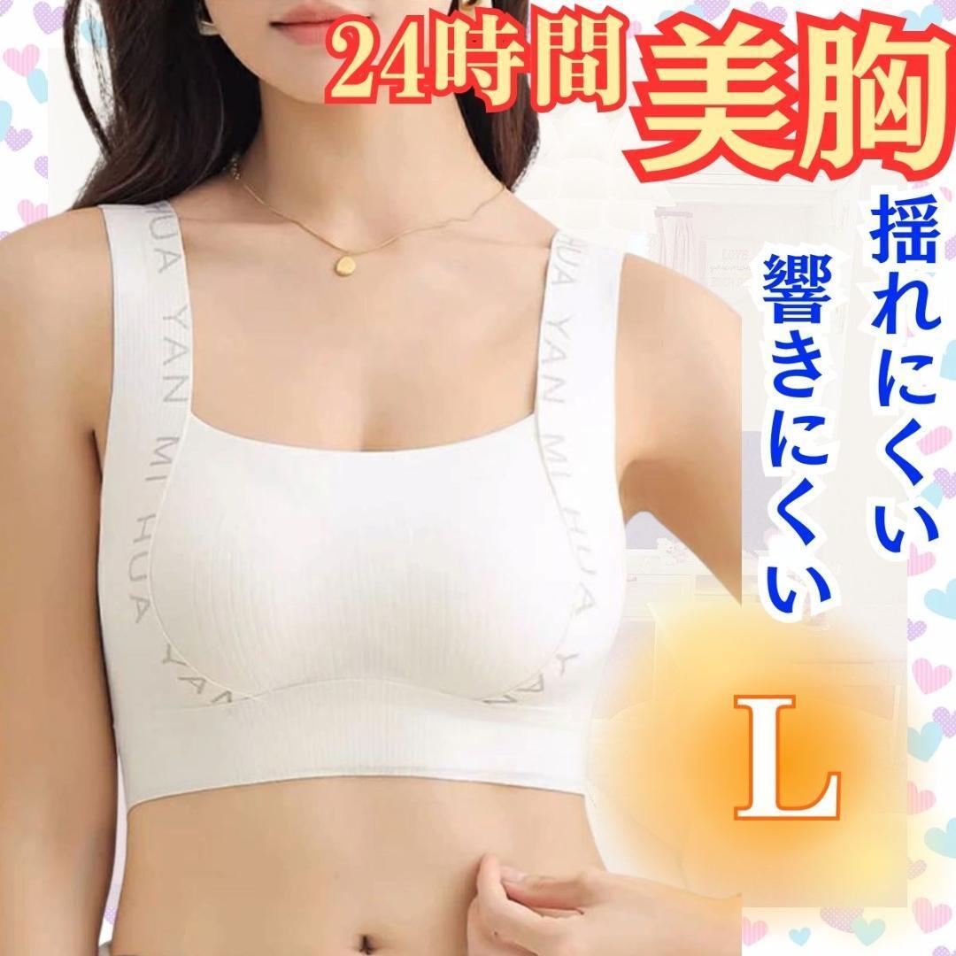 - ノンワイヤー ナイトブラ L パッド付 揺れ防止 スポーツブラ ホワイト cc-1077-1
