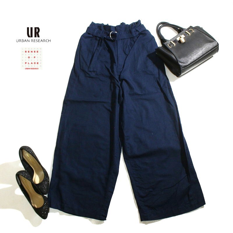 > 美品 SENSE OF PLACE センスオブプレイス URBAN RESEARCH アーバンリサーチ 麻 綿 ベルト付き ゆったり ワイド パンツ 7号 36 紺 ネイビー