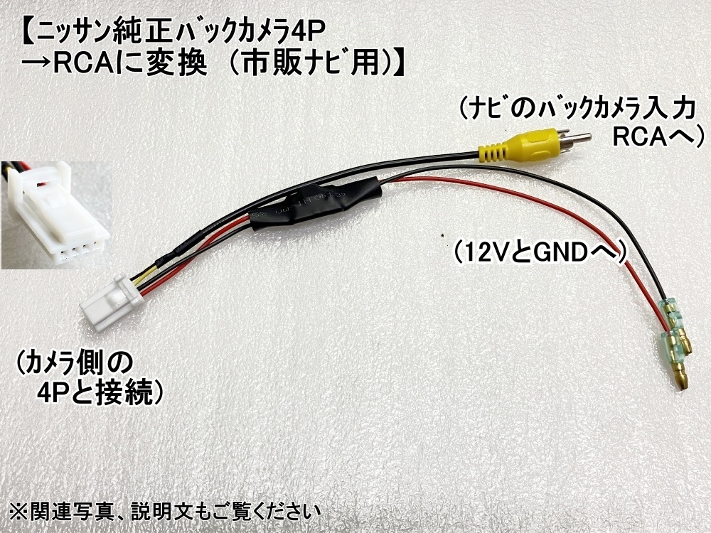 > ニッサン純正バックカメラ変換キット 4P~RCA変換ハーネス NISSAN純正ナビから市販ナビへ(MM317D-AMM317D-W MM517D-L MM517D-L MM517D-W)