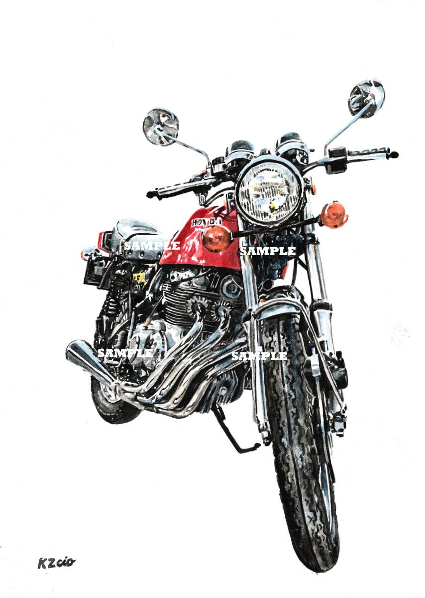 - A4プリントです ホンダ CB400FOUR ヨンフォア ④ 水彩画 バイクイラスト