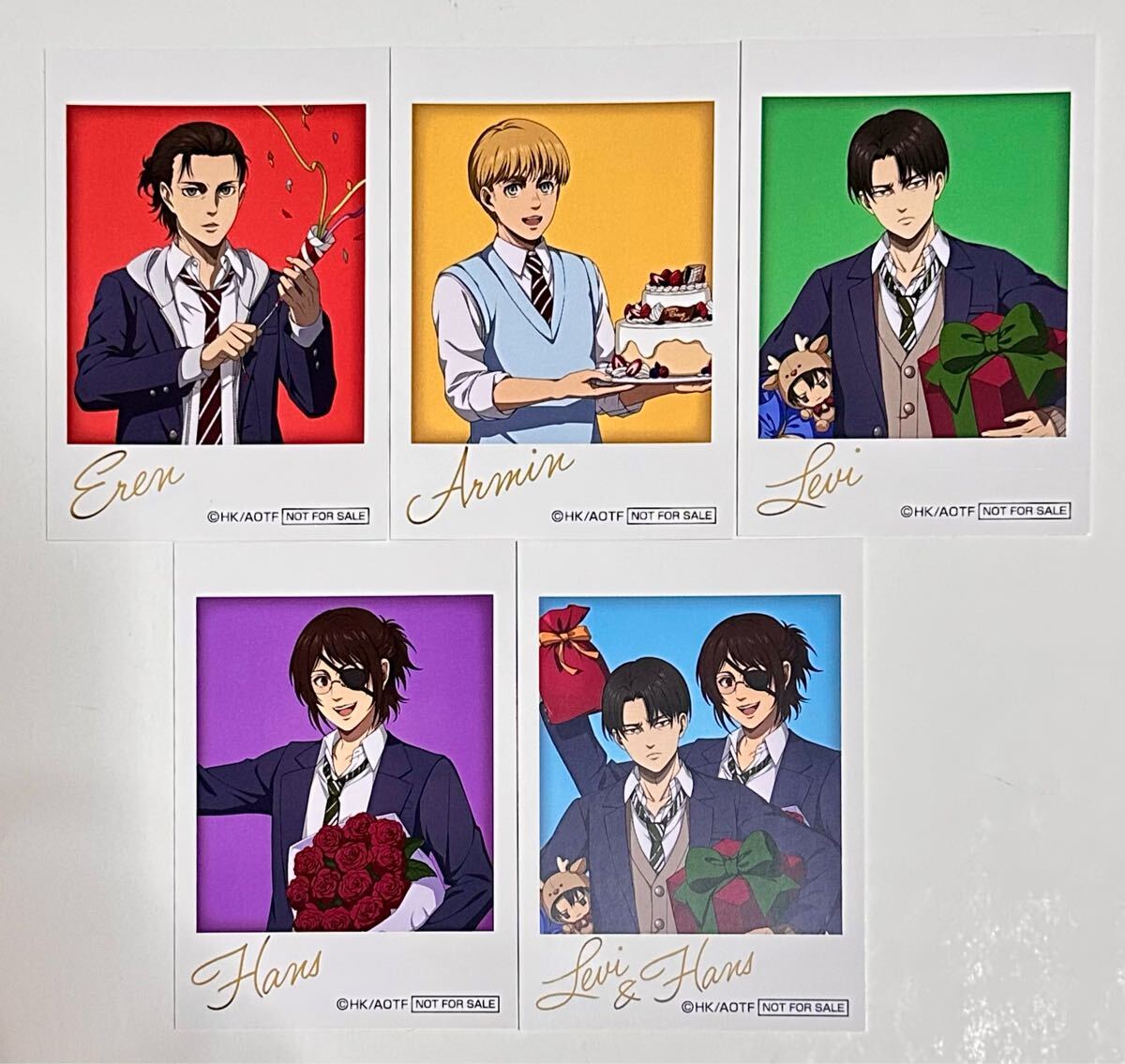 - ☆進撃の巨人※エレン※アルミン※リヴァイ※ハンジ※メディコス※購入特典※フォトカード※非売品※学生服ver.※5枚セット☆