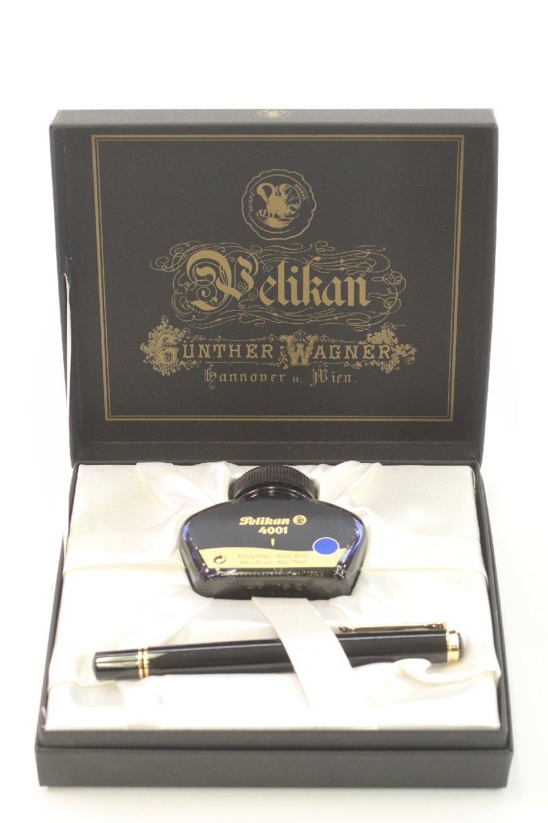 - PELIKAN ペリカン SOUVERAN スーベレーン ペン先14C 585 刻印 ブラック ゴールドカラー インクセット 4001 文具 筆記用具 0284-B